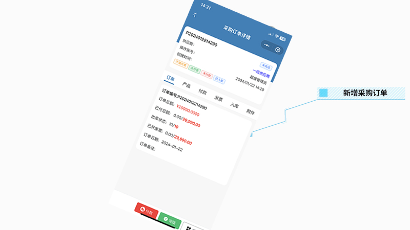 协助企业实现统一采购流程、精细化管理采购预算,提高采购效率和管理水平;它包括请购、采购计划、采购订货、进货等采购过程管理以及采购相关事务管理。
